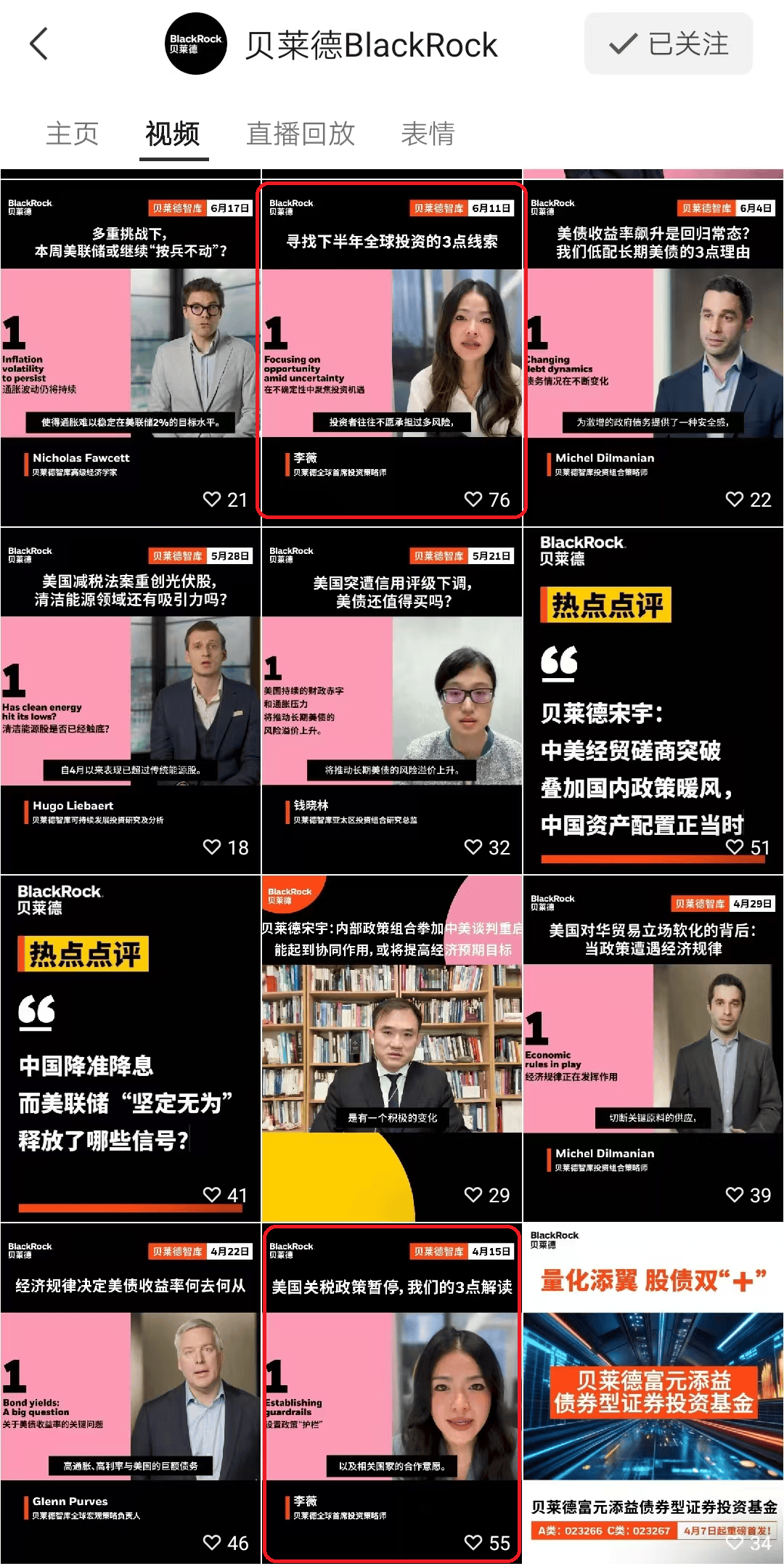 李薇年仅35岁就已经是全球首席投资策略师,年初BlackRock的2025年全球展望,就是由她解读的,BlackRock投资研究所 (BII) 的国家和地区首席策略师全球团队,都归她管。
