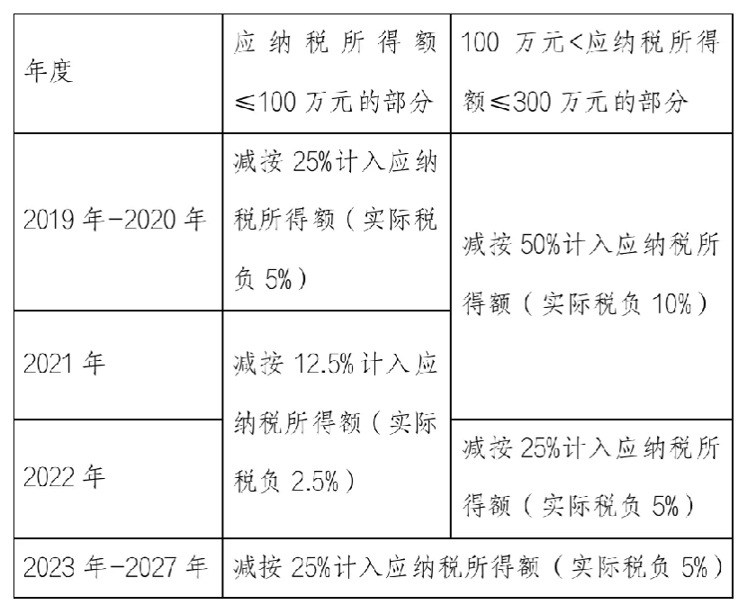 自2023年1月1日至2027年12月31日,对小型微利企业年应纳税所得额不超过300万元的部分,减按25%计入应纳税所得额,按20%的税率缴纳企业所得税。(实际税负5%)