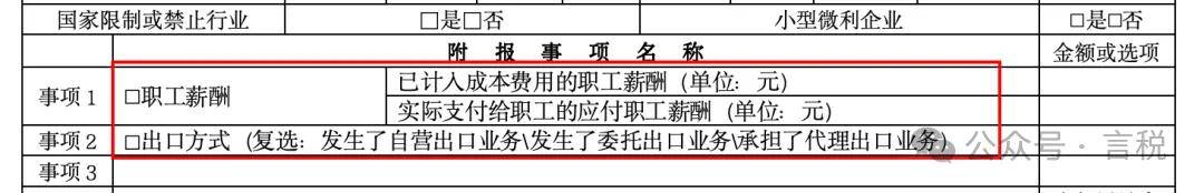 (一)增加附报事项项目。在“优惠及附报事项有关信息”部分增加“职工薪酬”和“出口方式”项目。