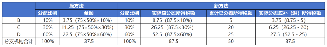 将汇缴环节总分机构分摊税款计算方法推广至预缴环节,即企业先对截止到本月(季)度应纳所得税额进行分摊,再由总、分机构分别抵减其已分摊预缴税款,并计算本月(季)度应补(退)所得税。