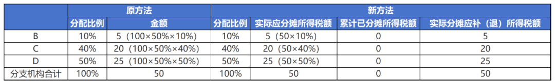 需要说明的是,汇总纳税企业如果不存在注销分支机构、分摊税款计算不准确等情形,无论按原计算方法,还是按新计算方法,结果都是一样的。但是,若汇总纳税企业前期预缴环节未准确计算分摊税款或当季发生分支机构注销情形,新计算方法将通过全量分摊方式,对全年分摊税款重新计算。