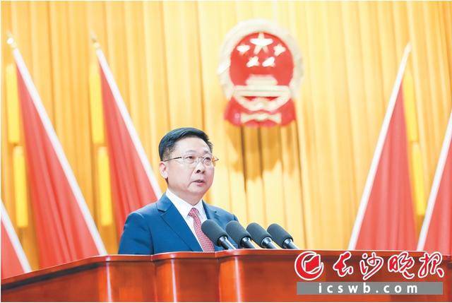 陈博彰在长沙市第十六届人民代表大会第六次会议上作政府工作报告。 长沙晚报全媒体记者 董阳 摄