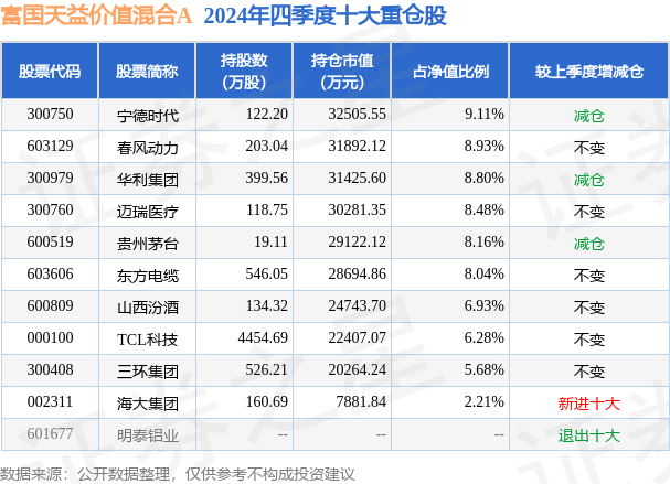 富国天益价值混合A为混合型-灵活基金,根据最新一期基金季报显示,该基金资产配置:股票占净值比84.72%,债券占净值比3.5%,现金占净值比14.52%。基金十大重仓股如下: