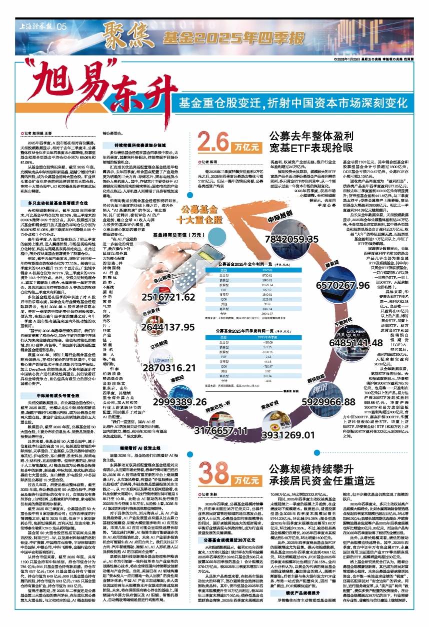 2026-01-23百家乐,百家乐官方网站,百家乐APP下载,百家乐游戏平台◎记者 赵明超 王彭 2025年四季度,A股市场在相对高位震荡。天相投顾数据显示,相对于去年三季度末,公募整体权益仓位在去年四季度末小幅降低,股票型基金和混合型基金平均仓位分别为89.06%和81.05%。 从基金重仓股情况来看,截至2025年底,光模块龙头中际旭创和新易盛,超越宁德时代和腾讯控股,成为公募基金前两大重仓股。矿业巨头紫金矿业也史无前例地挤进前五大重仓股。在前十大重仓股中,AI相关概念股还有寒武纪和东山精密。 多只主动权益基金显著提升仓位 天相投顾数据显示,截至2025年四季度末,可比基金平均仓位为82.16%,较三季度末的83.06%微降0.89个百分点。其中,股票型开放式基金和混合型开放式基金的平均仓位分别为89.06%和81.05%,较三季度末分别降低0.08个百分点和1个百分点。 去年四季度,A股市场在经历了前三季度的强势上涨后,进入震荡阶段,市场呈现结构性分化特征,科技与周期品表现相对突出。在此过程中,部分权益类基金显著提升了股票仓位。 例如,截至去年四季度末,博时汇兴回报一年持有期混合的权益仓位为77.11%,较去年三季度末的64.8%提升12.31个百分点;广发诚享混合A权益仓位为92.31%,较三季度末的82%提升10.3个百分点。此外,交银先进制造混合A、嘉实主题新动力混合、永赢宏泽一年定开混合、泉果旭源三年持有期混合A等基金的权益仓位均较三季度末有所提升。 多位基金经理在四季报中表达了对A股后市的乐观态度。国泰金龙行业精选基金经理陈异表示,他对2026年A股市场持乐观态度,并对一季度的行情走势也保持积极预期。他认为,在经历去年四季度的震荡之后,今年一季度A股市场有望迎来国内外流动性的双重利好。 “基于对2026年春季行情的看好,我们在四季度提高了权益仓位,加仓主要方向集中在我们认为未来业绩确定性高、估值相对较低的领域,如AI硬件、有色等。”富国新机遇灵活配置混合基金经理张弘称。 展望2026年,博时主题行业混合基金经理石炯表示,在相对宽松的货币环境中,中国核心资产的估值水平在全球新兴市场中偏低,加上DeepSeek的惊艳表现,外资有望逐步对中国核心资产进行系统性再重估,其仍较看好具有全球竞争力、且估值具有吸引力的部分中国核心资产。 中际旭创成头号重仓股 天相投顾数据显示,在公募基金重仓股中,截至2025年底,光模块龙头中际旭创和新易盛,超越宁德时代和腾讯控股,成为公募基金前两大重仓股。紫金矿业史无前例地挤进前五大重仓股。 数据显示,截至2025年底,公募基金前50大重仓股,主要分布在信息技术、消费品及服务、投资品等行业。 具体来看,在基金前50大重仓股中,属于信息技术行业的高达18只,包括通信领域的中际旭创、天孚通信、工业富联,以及元器件领域的寒武纪、沪电股份、东山精密、胜宏科技、深南电路、生益科技、兆易创新等。值得注意的是,得益于人工智能爆发,AI概念股成为公募基金投资组合中的新贵,新易盛、中际旭创、寒武纪挤进公募前七大重仓股。东山精密、沪电股份、中芯国际挤进公募前15大重仓股。 过去几年来,消费品板块整体疲软,截至2025年底,在公募基金前50大重仓股中,消费品及服务行业的标的仅有9只,白酒股仅有贵州茅台、山西汾酒、五粮液和泸州老窖,家电板块仅有美的集团和海尔智家。 截至2025年三季度末,公募基金前50大重仓股中有8家创新药公司;但在四季度的行情调整之后,截至2025年底,仅余下5家创新药公司,包括恒瑞医药、百利天恒、信达生物、科伦博泰生物和CRO龙头药明康德。 基金前50大重仓股还包括互联网龙头腾讯控股、阿里巴巴-W,以及原材料领域的洛阳钼业、中矿资源、中国海洋石油等,半导体领域的中芯国际、中微公司、中科飞测等,金融行业仅有中国平安和招商银行。 从持仓市值来看,截至2025年底,共有1190只基金持有中际旭创,持仓市值合计为784亿元;944只基金重仓持有新易盛,持仓市值为657亿元;1304只基金重仓持有宁德时代,持仓市值为649亿元;999只基金重仓持有腾讯控股,持仓市值为593亿元;1165只基金重仓持有紫金矿业,持仓市值为393亿元。 值得注意的是,在2025年二季度还是公募基金第三大重仓股的贵州茅台,在年底位居公募第九大重仓股。与之相对应的是,AI概念股纷纷被公募重仓。 持续挖掘科技赛道细分领域 多位绩优基金经理在基金四季报中表示,去年四季度,其聚焦科技板块,持续挖掘不同细分领域的投资机会。 汇安成长优选灵活配置混合基金经理单柏霖表示,去年四季度,组合重点配置了产业趋势更为明确的三大方向:存储芯片、固态电池及小部分人形机器人。其中,存储芯片主要受益于AI端侧应用落地带来的需求增长;固态电池的产业化奇点临近;人形机器人则着眼于具身智能加速落地。 华商均衡成长混合基金经理张明昕坦言,经过去年三季度的快速上涨之后,海内外陷入“AI基建泡沫”的争议。在此期间,其广泛调研、密切评估AI的产业趋势,建立全球AI收入与算力投资的基准评估模型,确立板块核心驱动因素并紧密跟踪变化。 “在AI产业趋势进一步强化的背景下,我在操作上仍延续以海外算力为核心配置的思路,并持续围绕AI行业的整体趋势,不断挖掘细分的高景气方向,例如光芯片、谷歌产业链、储能及机器人等。”张明昕称。 华泰柏瑞质量精选